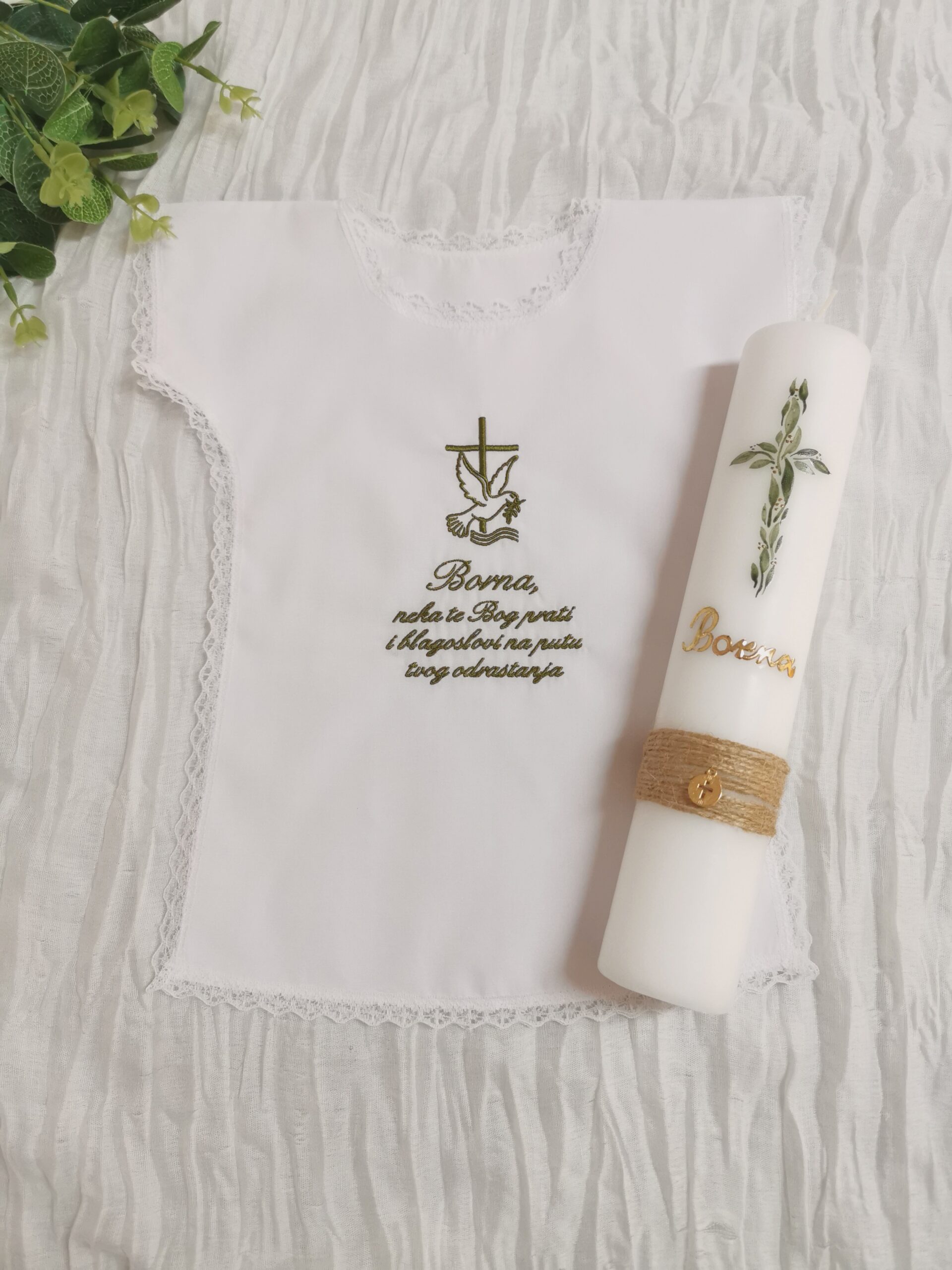 Budite spremni za velik dan Vašeg mališana. Izaberite između velike ponude krsnih kompleta ili pak izaberite svaki proizvod pojedinačno. Svi naši krsni kompleti, kao i pojedinačni proizvodi za krštenje nude velik broj opcija, od motiva, boja pa sve do natpisa. Tako možete birati razne motive na krsnim košuljicama i rupčićima, natpise različitih boja, te boje koje će se nalaziti na svijeći. Naše krsne svijeće ručni su rad, te svaka od njih može biti personalizirana i jedinstvena. Sve zbog toga kako bi Vi mogli izabrati savršen krsni komplet za Vaše dijete.