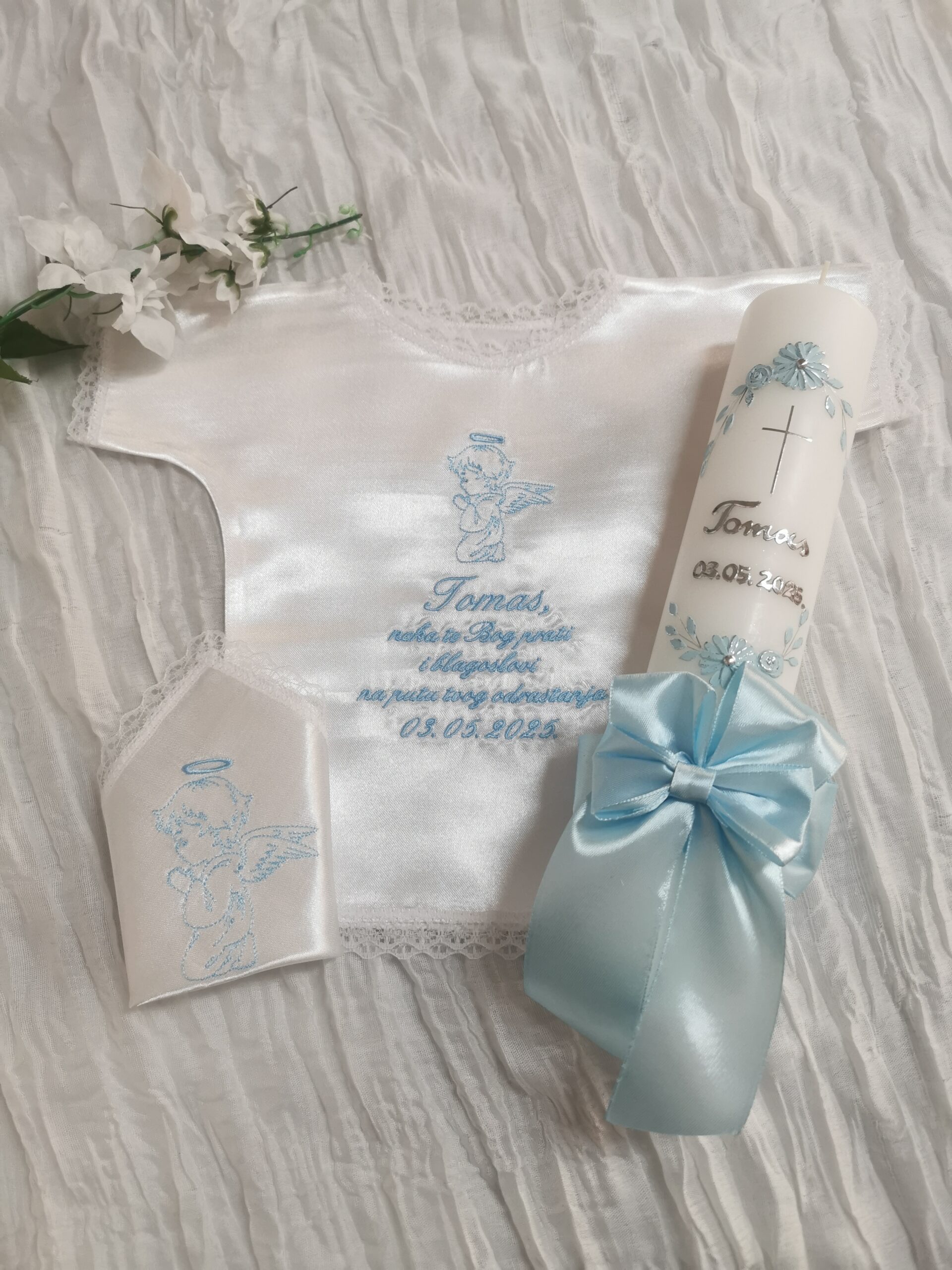 Budite spremni za velik dan Vašeg mališana. Izaberite između velike ponude krsnih kompleta ili pak izaberite svaki proizvod pojedinačno. Svi naši krsni kompleti, kao i pojedinačni proizvodi za krštenje nude velik broj opcija, od motiva, boja pa sve do natpisa. Tako možete birati razne motive na krsnim košuljicama i rupčićima, natpise različitih boja, te boje koje će se nalaziti na svijeći. Naše krsne svijeće ručni su rad, te svaka od njih može biti personalizirana i jedinstvena. Sve zbog toga kako bi Vi mogli izabrati savršen krsni komplet za Vaše dijete.