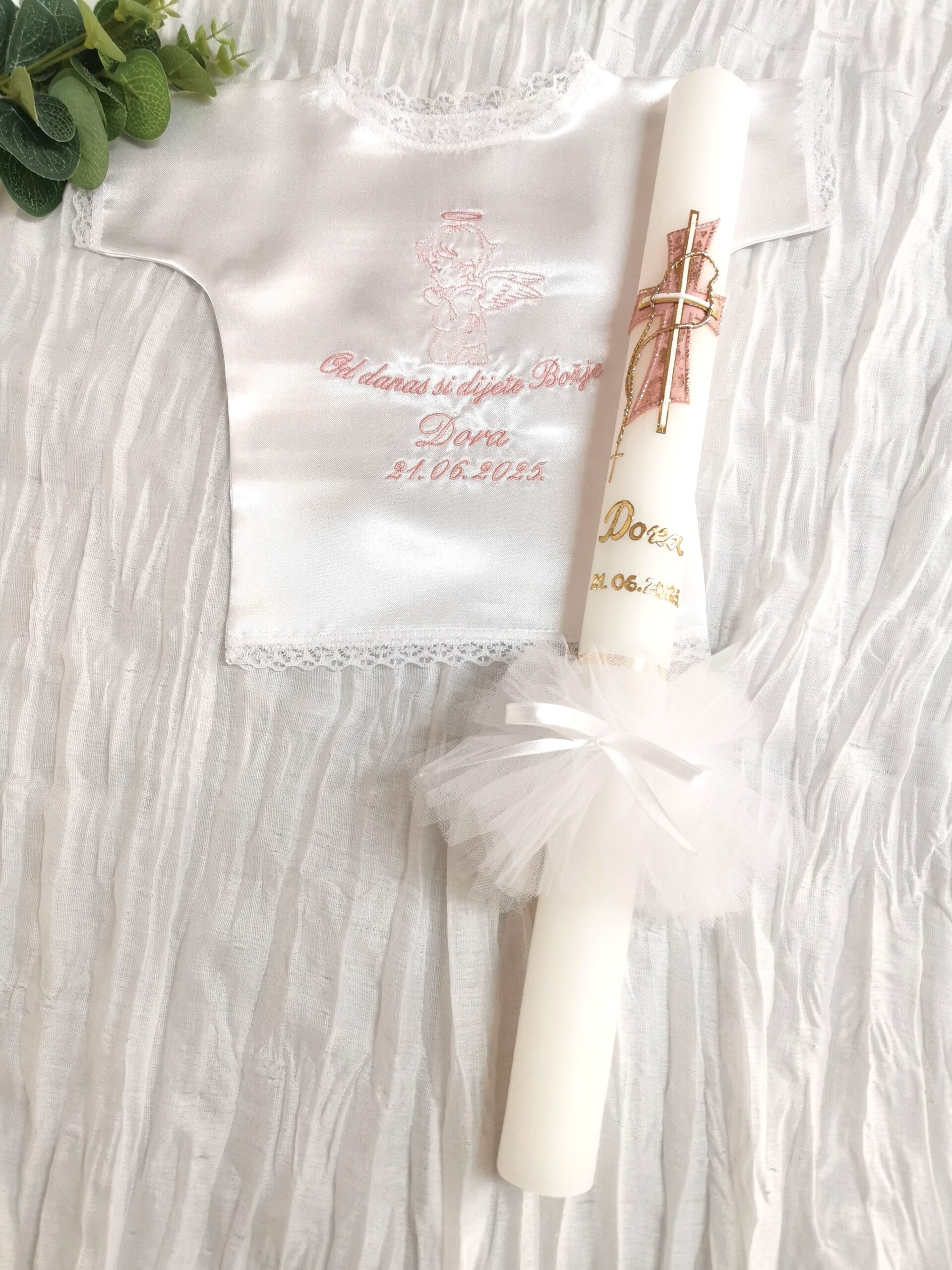 Budite spremni za velik dan Vašeg mališana. Izaberite između velike ponude krsnih kompleta ili pak izaberite svaki proizvod pojedinačno. Svi naši krsni kompleti, kao i pojedinačni proizvodi za krštenje nude velik broj opcija, od motiva, boja pa sve do natpisa. Tako možete birati razne motive na krsnim košuljicama i rupčićima, natpise različitih boja, te boje koje će se nalaziti na svijeći. Naše krsne svijeće ručni su rad, te svaka od njih može biti personalizirana i jedinstvena. Sve zbog toga kako bi Vi mogli izabrati savršen krsni komplet za Vaše dijete.