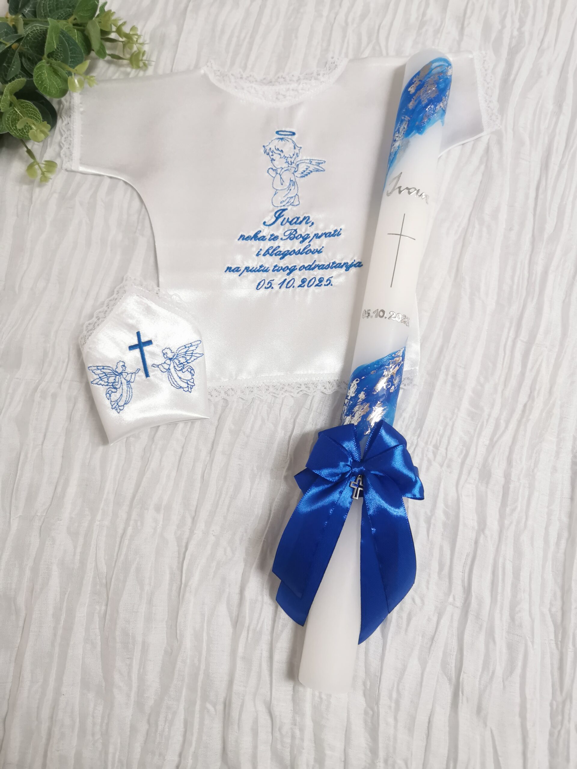 Budite spremni za velik dan Vašeg mališana. Izaberite između velike ponude krsnih kompleta ili pak izaberite svaki proizvod pojedinačno. Svi naši krsni kompleti, kao i pojedinačni proizvodi za krštenje nude velik broj opcija, od motiva, boja pa sve do natpisa. Tako možete birati razne motive na krsnim košuljicama i rupčićima, natpise različitih boja, te boje koje će se nalaziti na svijeći. Naše krsne svijeće ručni su rad, te svaka od njih može biti personalizirana i jedinstvena. Sve zbog toga kako bi Vi mogli izabrati savršen krsni komplet za Vaše dijete.