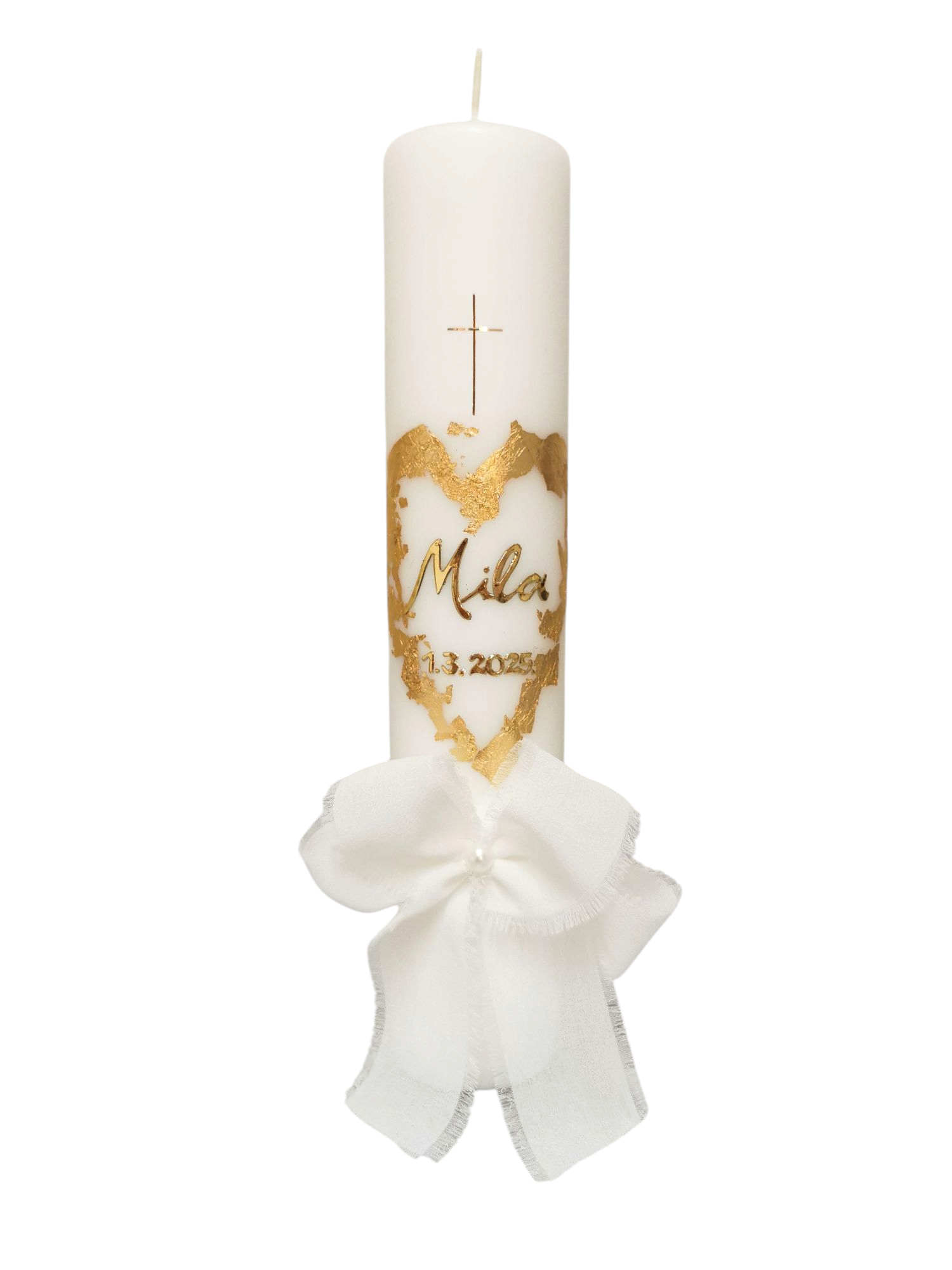 Svijeća: napravljena je od kvalitetnog parafinskog voska, ručno rađenih ukrasa i detalja prilagođenim Vama kako bi Vašem djetetu ostala trajna uspomena na tako poseban i velik dan!
