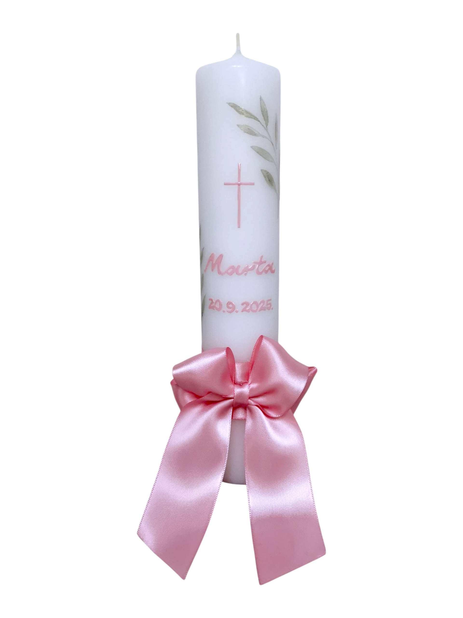 Svijeća: napravljena je od kvalitetnog parafinskog voska, ručno rađenih ukrasa i detalja prilagođenim Vama kako bi Vašem djetetu ostala trajna uspomena na tako poseban i velik dan!
